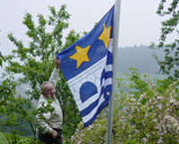 Nach 40 Jahren Präsidentenschaft und 12 Jahren als Grossrat wird Hans Lüscher mit grossem Applaus zum Ehrenpräsidenten gewählt. (Bild zeigt ihn beim „Hissen“ der Müheler-Fahne)